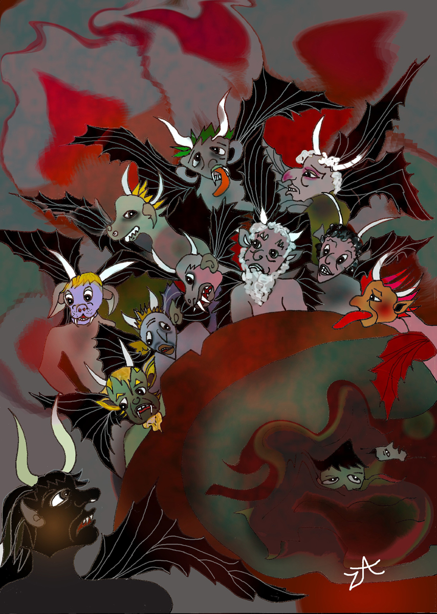 «Tra'ti avante, Alichino, e Calcabrina»,