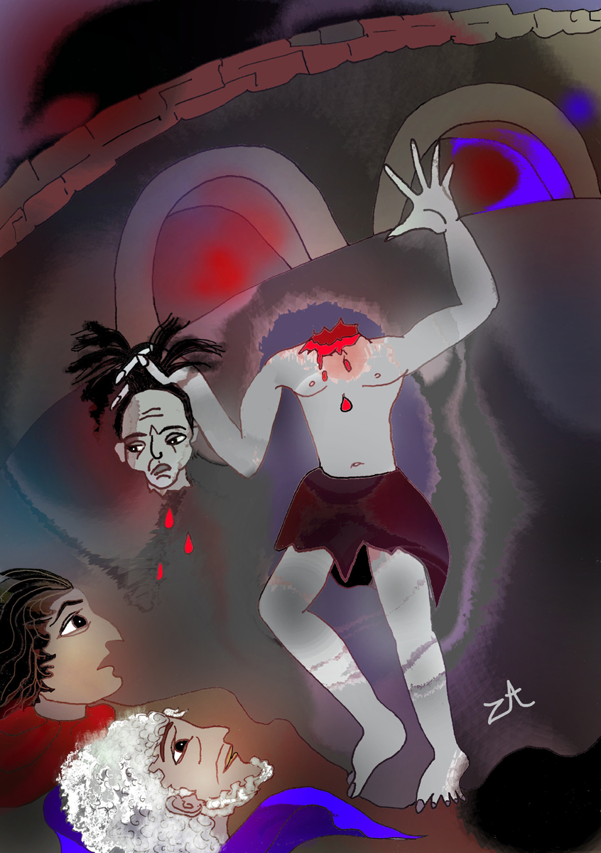 DANS LA NEUVIÈME BOLGE DES FAUTEURS DE SCANDALE, DE SHISMES ET DE DISCORDE, DANTE RENCONTRE MAHOMET QUI PERD SES TRIPES EN SE DÉCHIRANT LE TRONC ET, PARMI LA BANDE DES DAMNES BERTRAND DE BORNIO DONT LA TÊTE EST SÉPARÉE DU CORPS