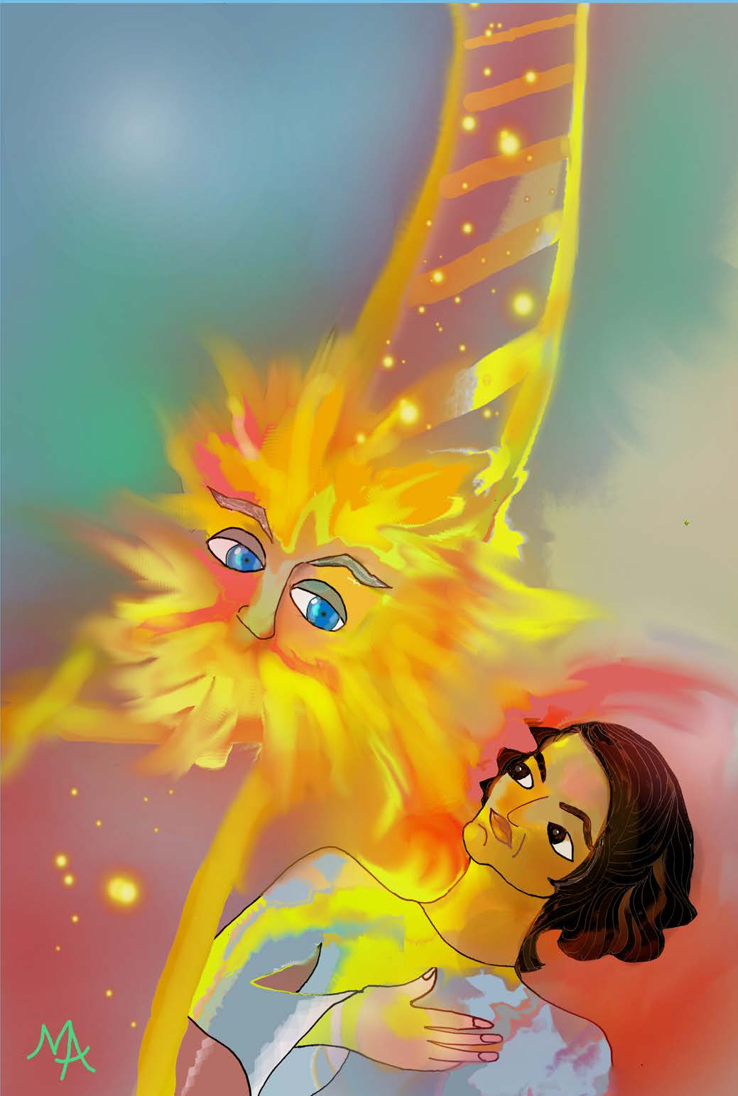 je vis de la couleur d'or, à travers laquelle reluit un rayon,
