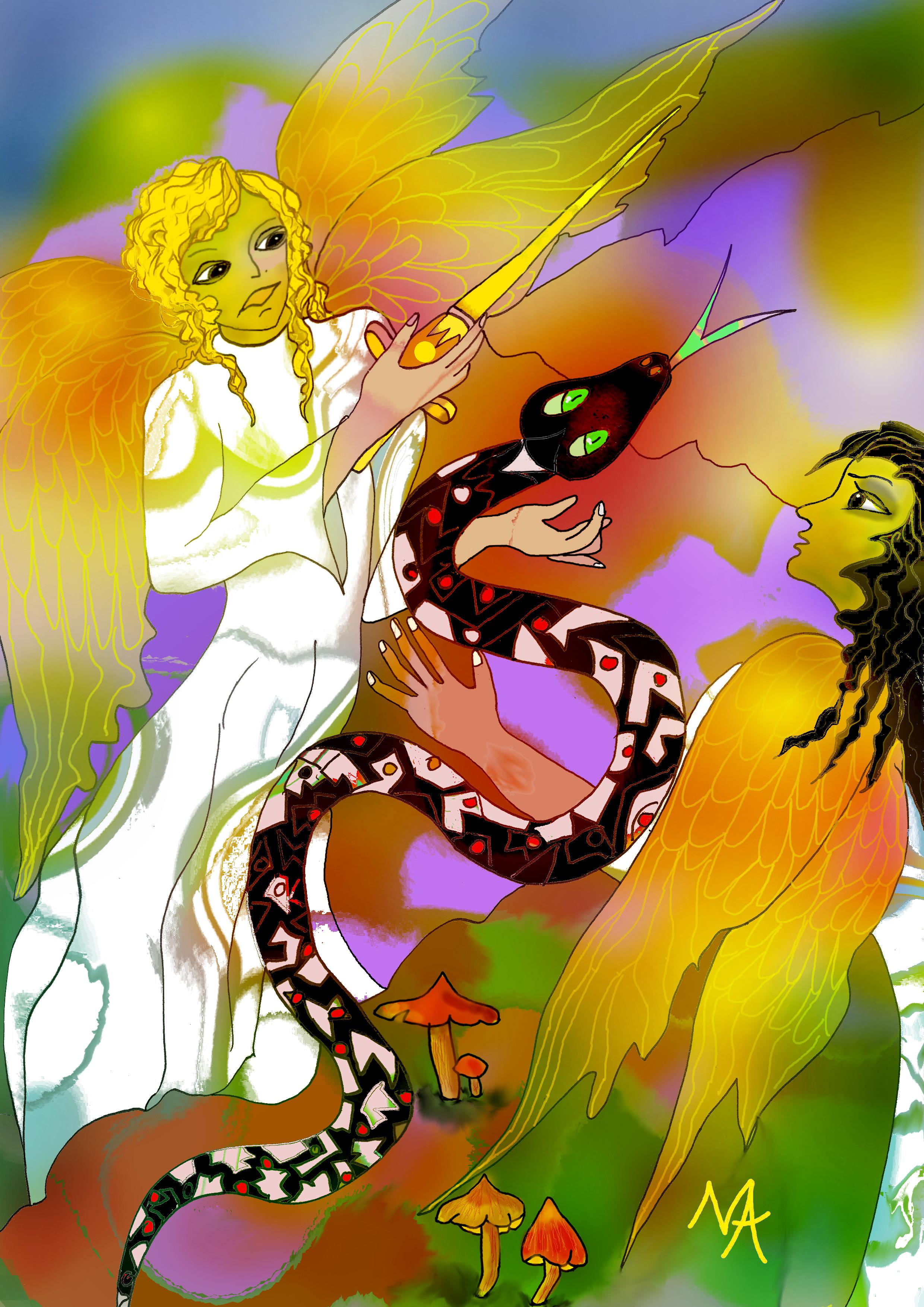 AU LEVER DU JOUR, APRÈS AVOIR RETROUVÉ CURRADO ET NINO, MARQUIS DE MALASPINA*, VIRGILE ET DANTE VOIENT APPARAÎTRE DANS LE CIEL DEUX ANGES, GARDIENS DU LIEU, QUI CHASSENT LA COULEUVRE MALÉFIQUE