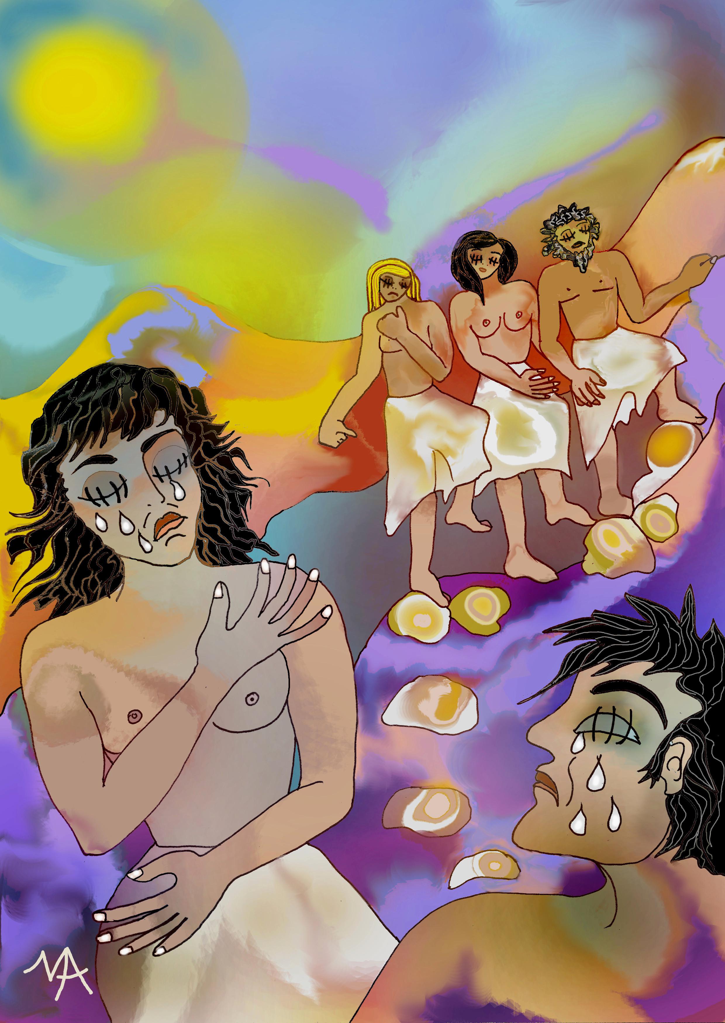 DANS LA DEUXIÈME BOLGE OÙ LES ÂMES SE PURIFIENT DE L'ENVIE, PARMI LES OMBRES AUX PAUPIÈRES COUSUES, DANTE RENCONTRE SAPIA*, FEMME DE VIVIANO DE' GHINIBALDI